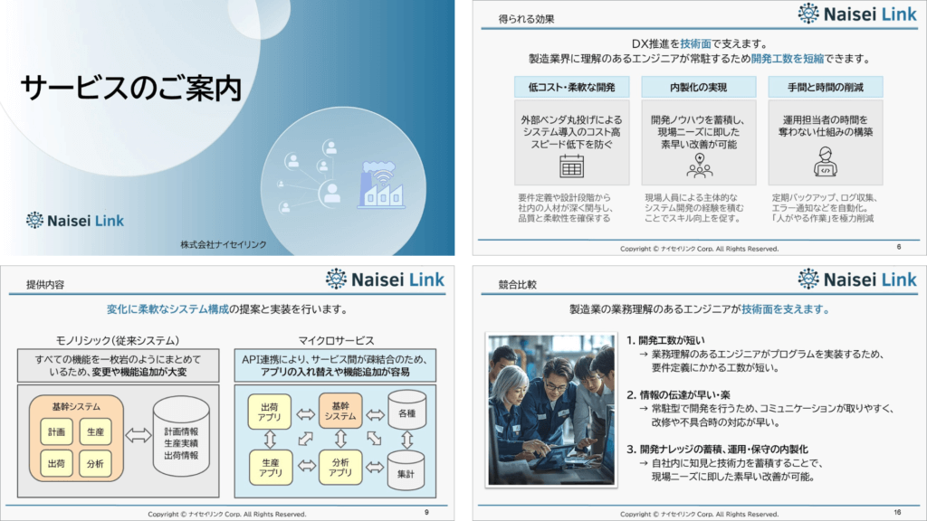 サービスのご案内や製造DXの実践ガイドなどをPDF形式の資料でご用意しています。